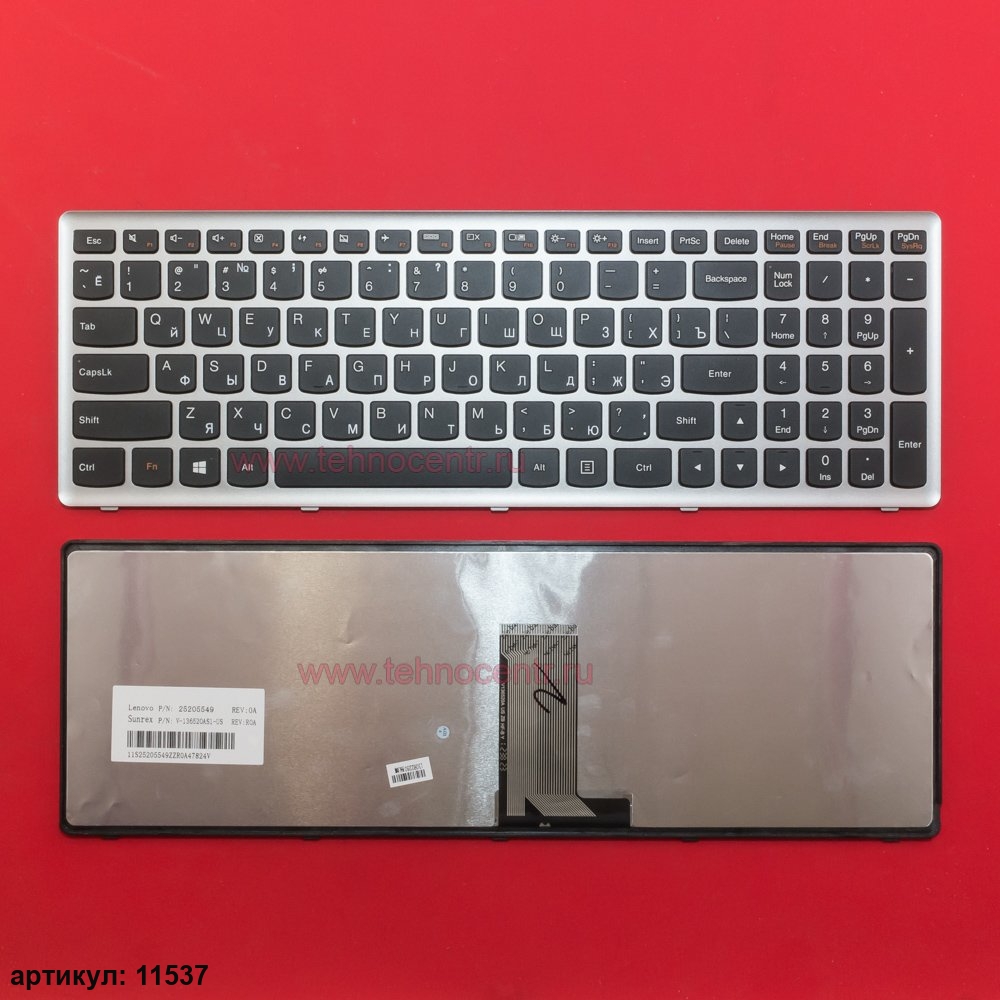 Клавиатура для ноутбука Lenovo U510, Z710 черная с серебристой рамкой