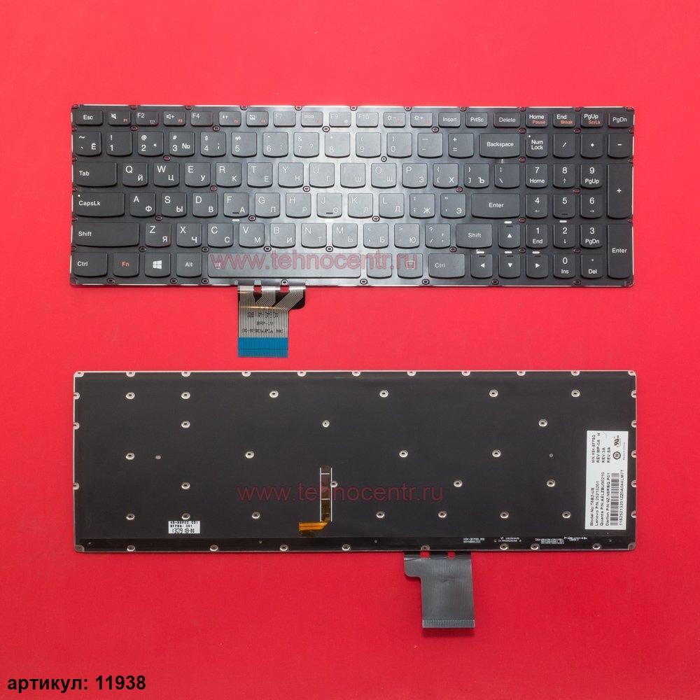 Клавиатура для ноутбука Lenovo U530P черная без рамки, с подсветкой