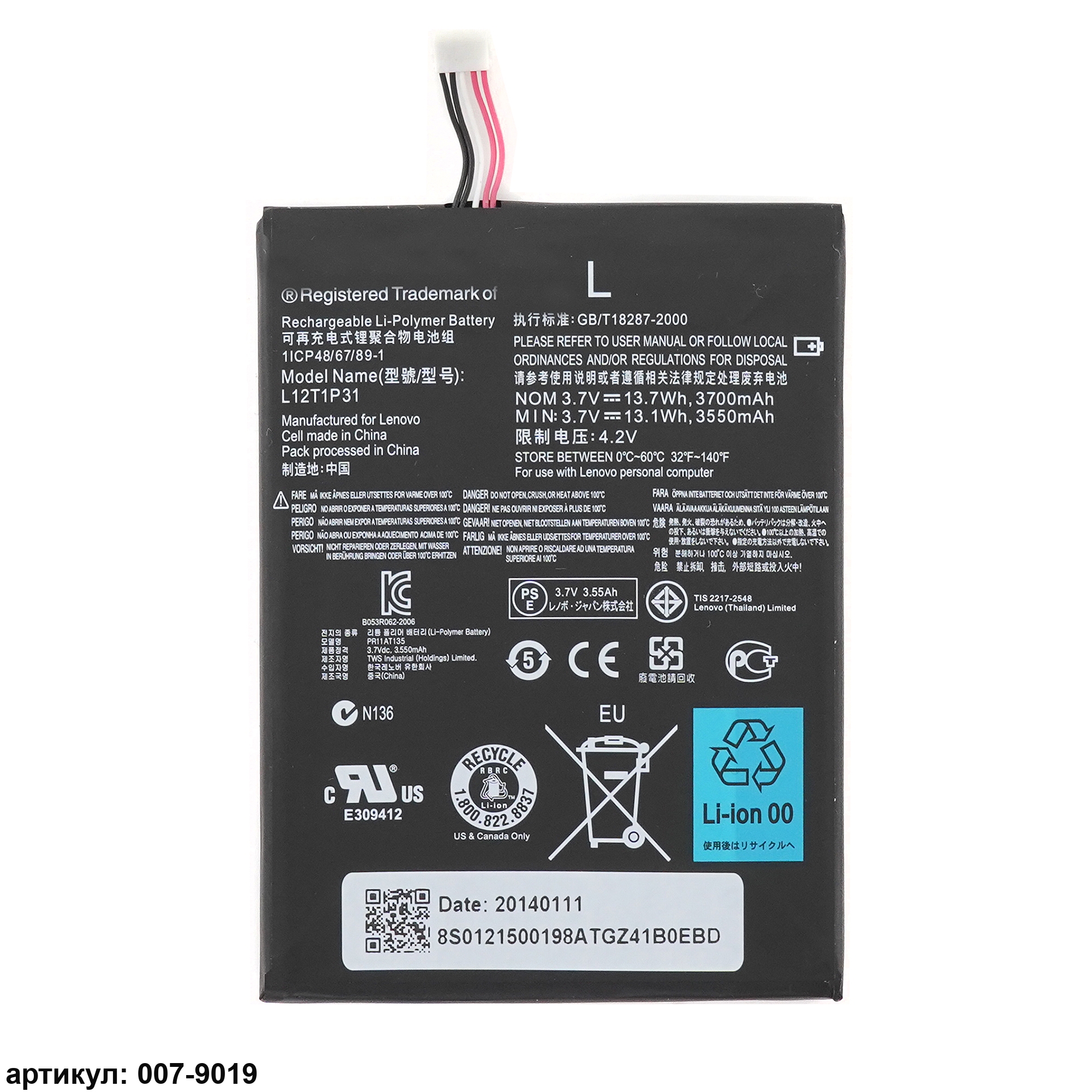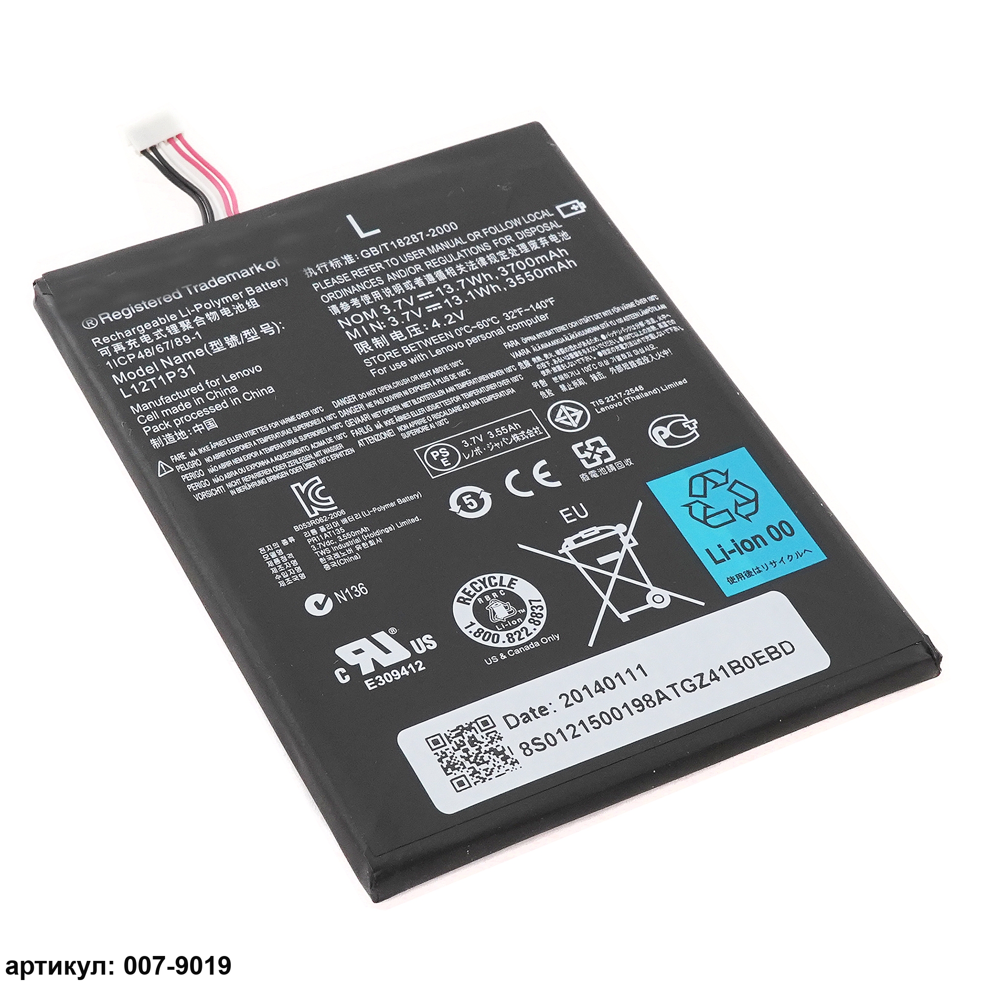 Подходит к планшетам: Lenovo IdeaTab A2107A, LePad A2207Совместимые P/n: BL195, CS-LVA210SL, L12T1P31, LI2TIP31
