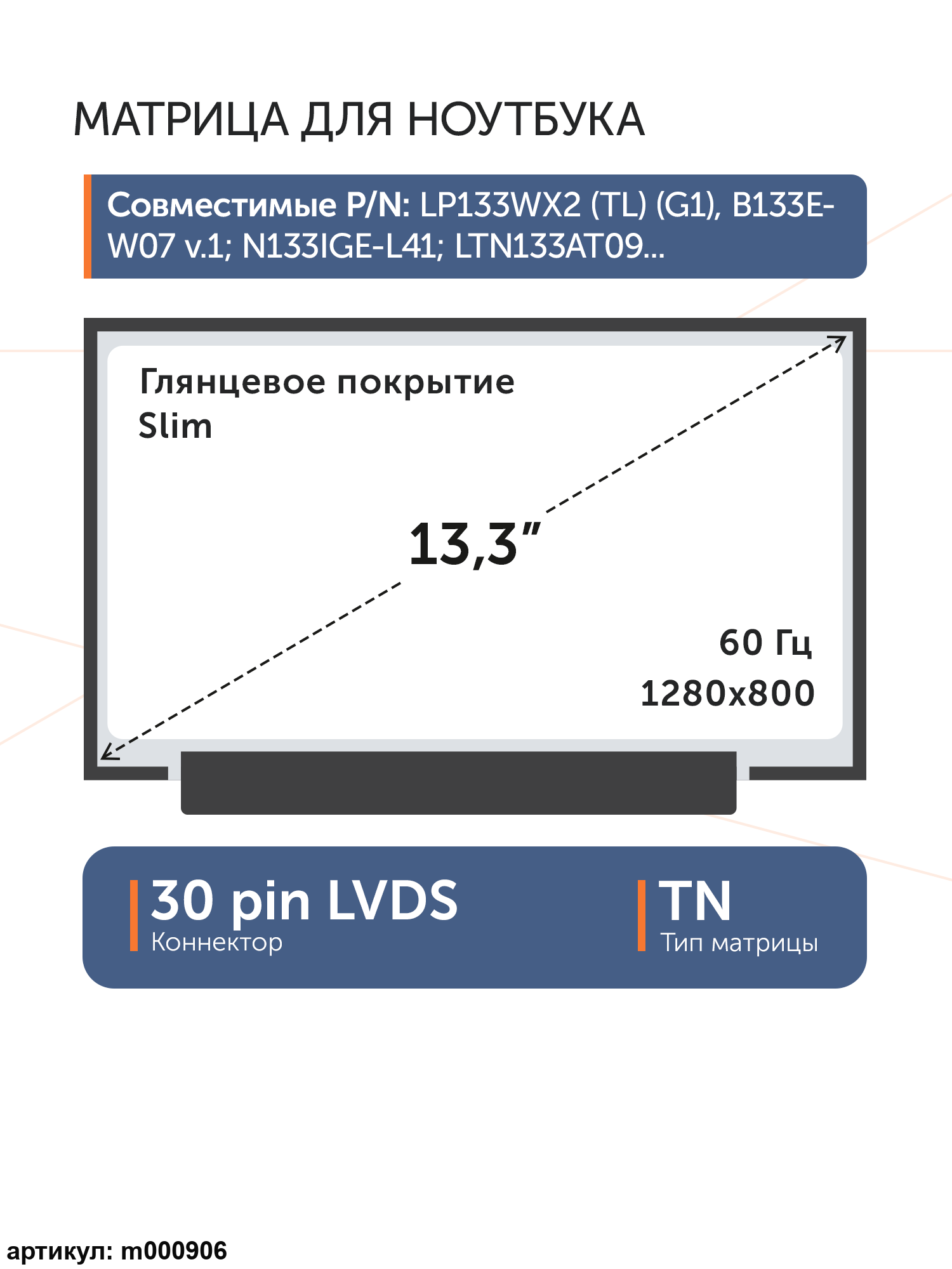 Совместимые модели: LP133WX2 (TL)(CA), LP133WX2-TLCA