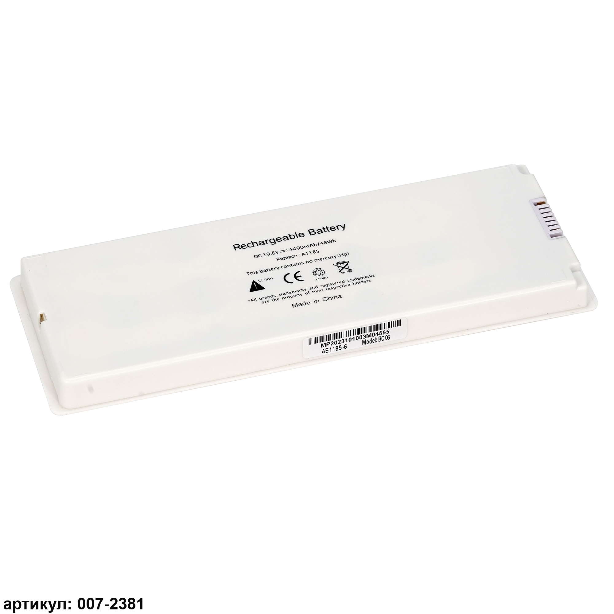 Аккумулятор для ноутбука MacBook (A1185) 13" A1181 10.8V 47Wh белый