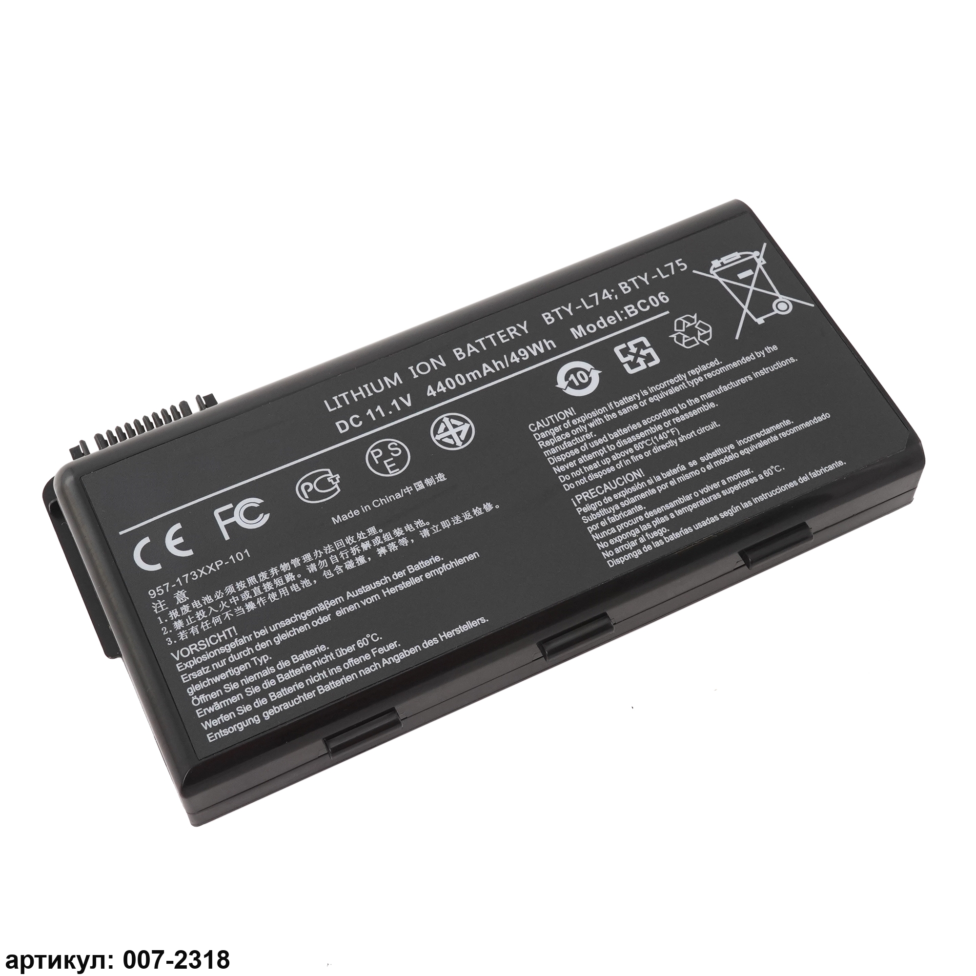 Совместимые P/N: BTY-L74, BTY-L75, MS-1682, 91NMS17LD4SU1, 91NMS17LF6SU1, 957-173XXP-101, 957-173XXP-102, S9N-2062210-M47
