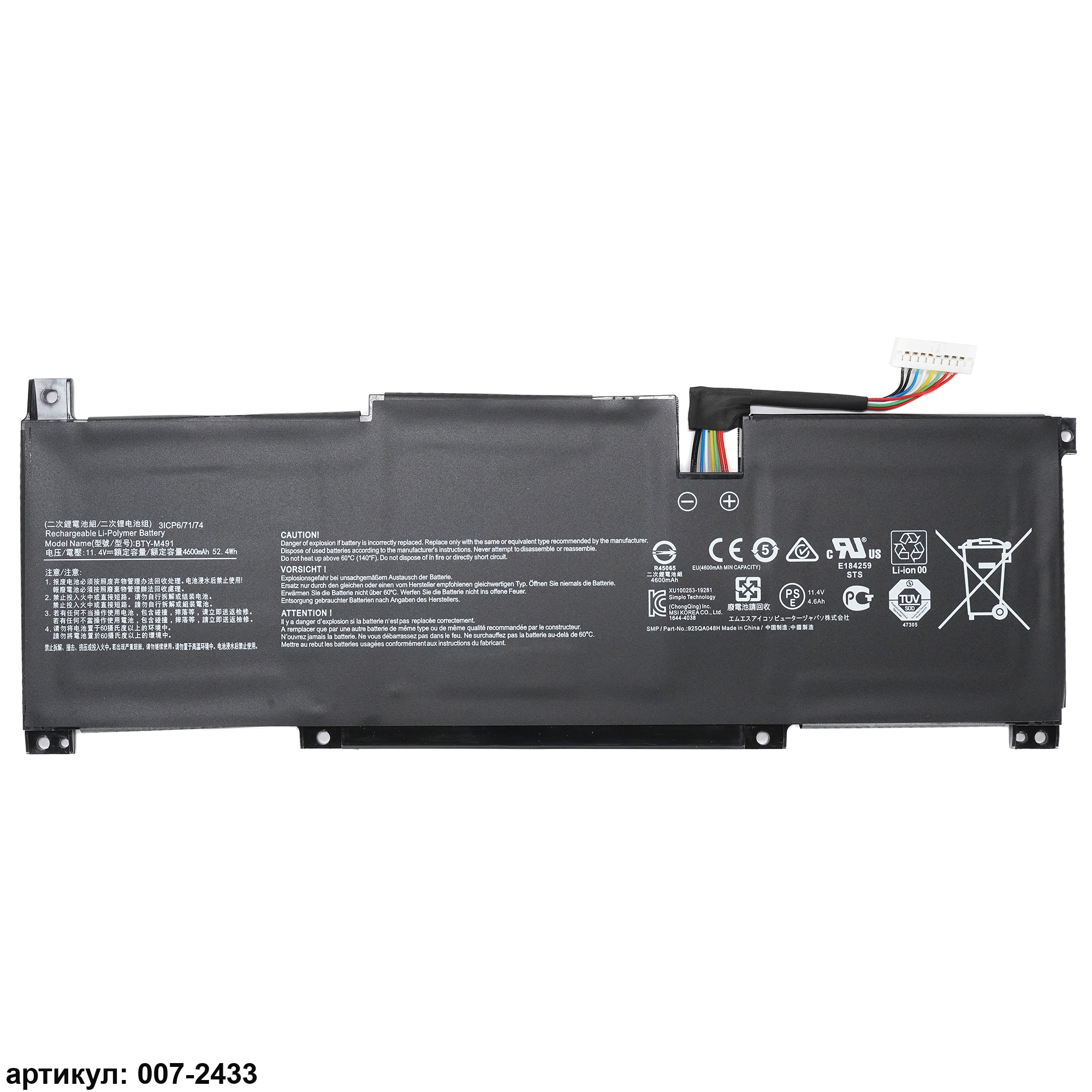 Совместимые P/N: BTY-M491
