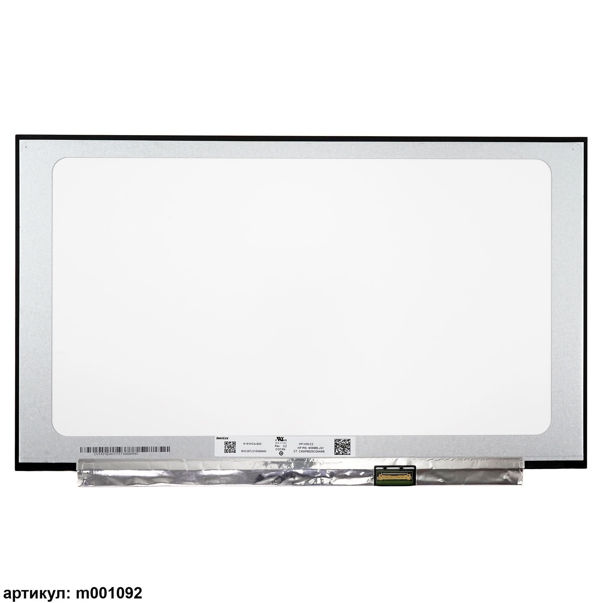 Матрица тонкая (slim), без креплений.Разъем расположен снизу справа на внешней плате.Совместимые модели: N161HCA-EA3, N161HCA-EA2