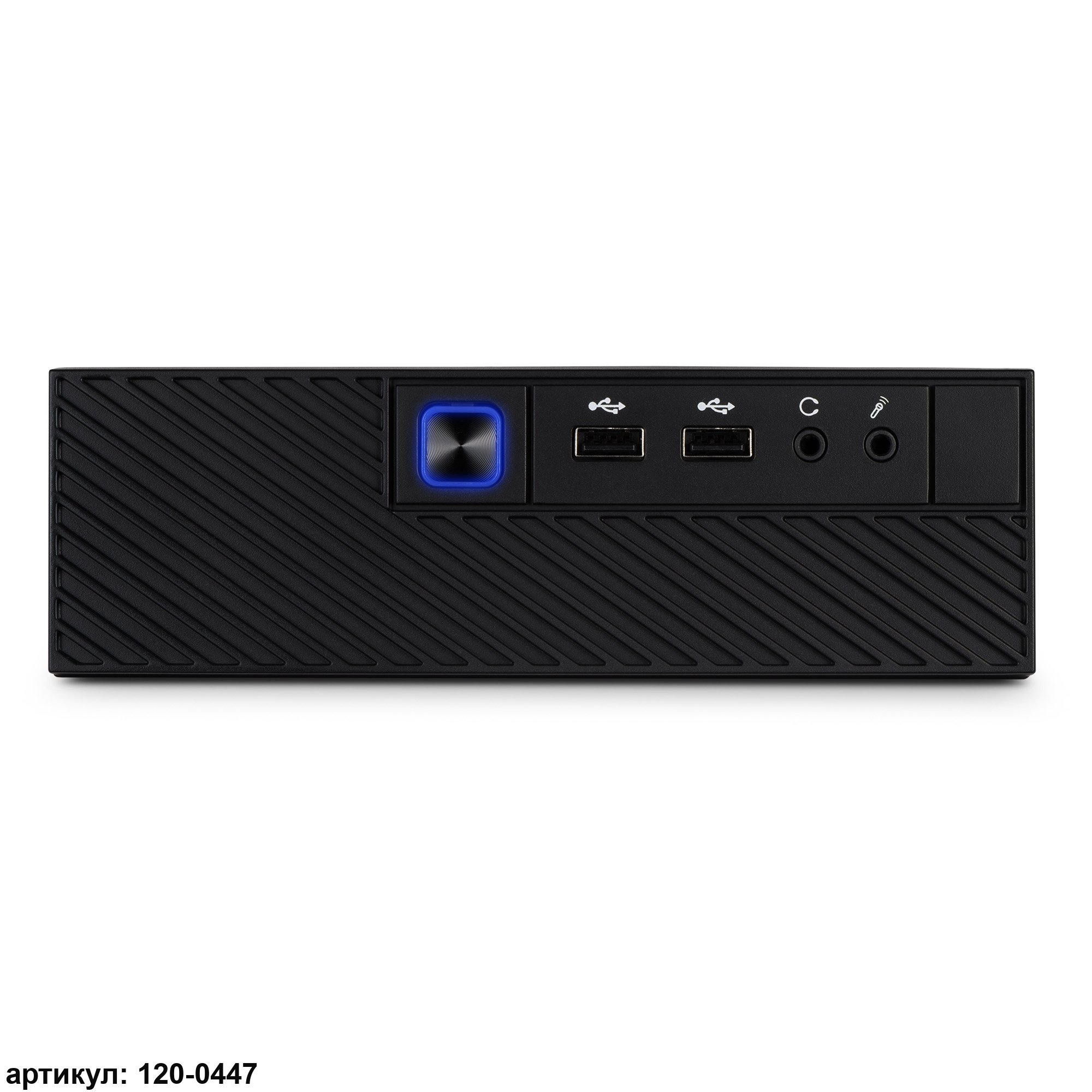 • Корпус из металла с перфорацией на боковых панелях для улучшения теплоотвода, на фронтальной части которого предусмотрены USB-порты и аудио-разъемы, что повышает его функциональность.