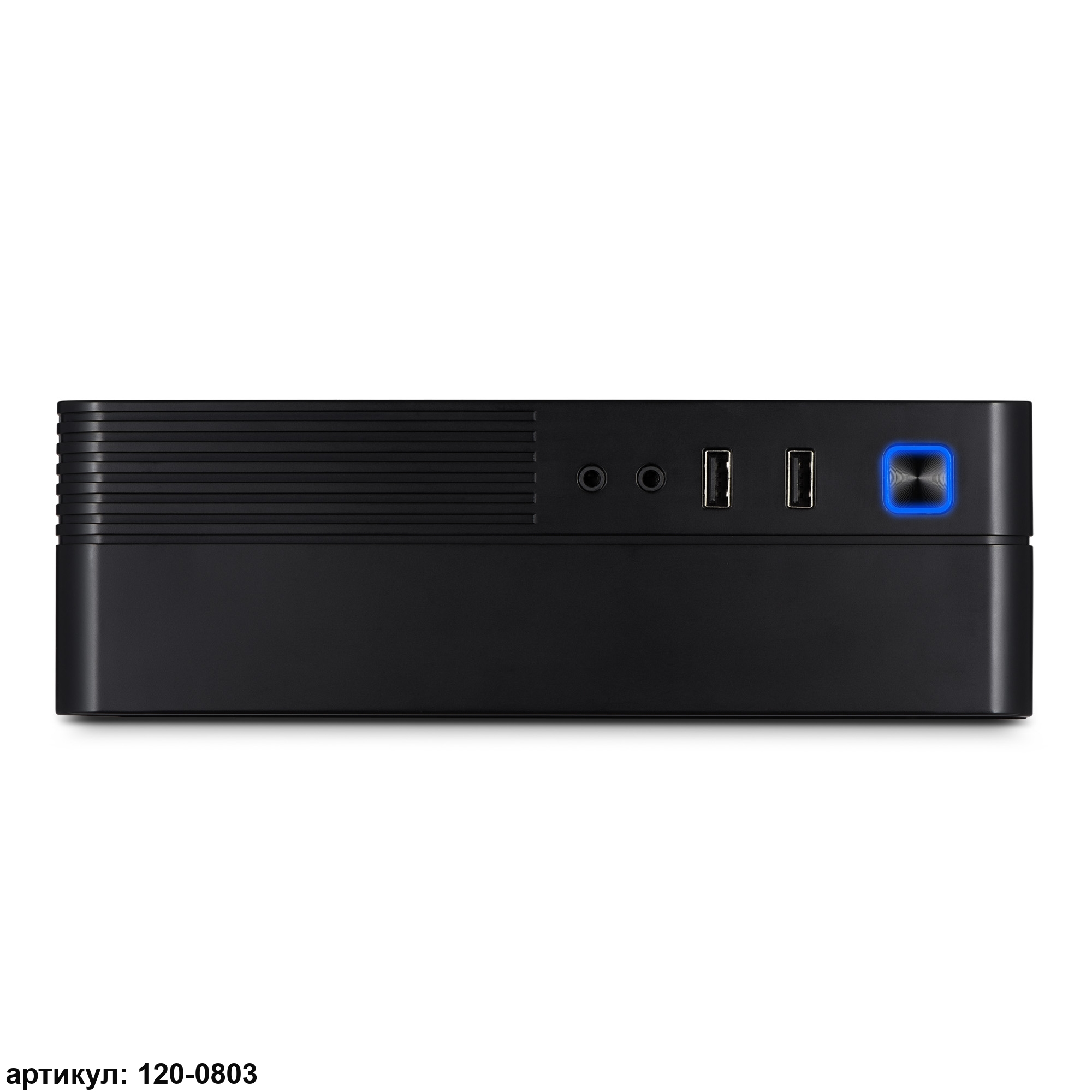 Черный металлический корпус вертикального типа отличается изысканным и современным дизайном, который подойдет для использования как в корпоративной, так и домашней среде. На его фронтальной части имеется несколько USB-портов, через которые осуществляется быстрое подключение без лишних манипуляций. Там же расположены гнезда для подключения микрофона и наушников. Боковая часть корпуса перфорирована, что обеспечивает вентиляцию и помогает компонентам эффективно охлаждаться.