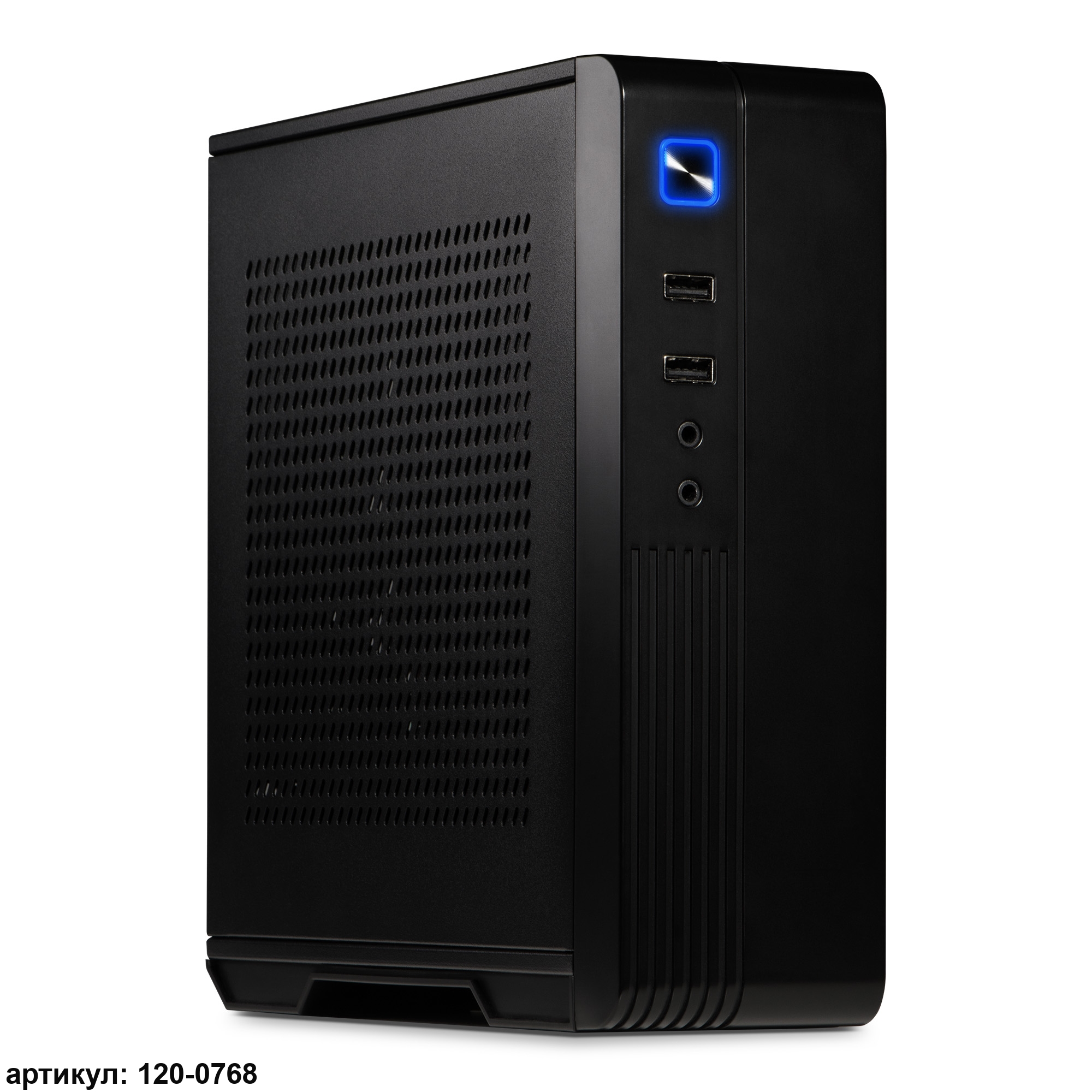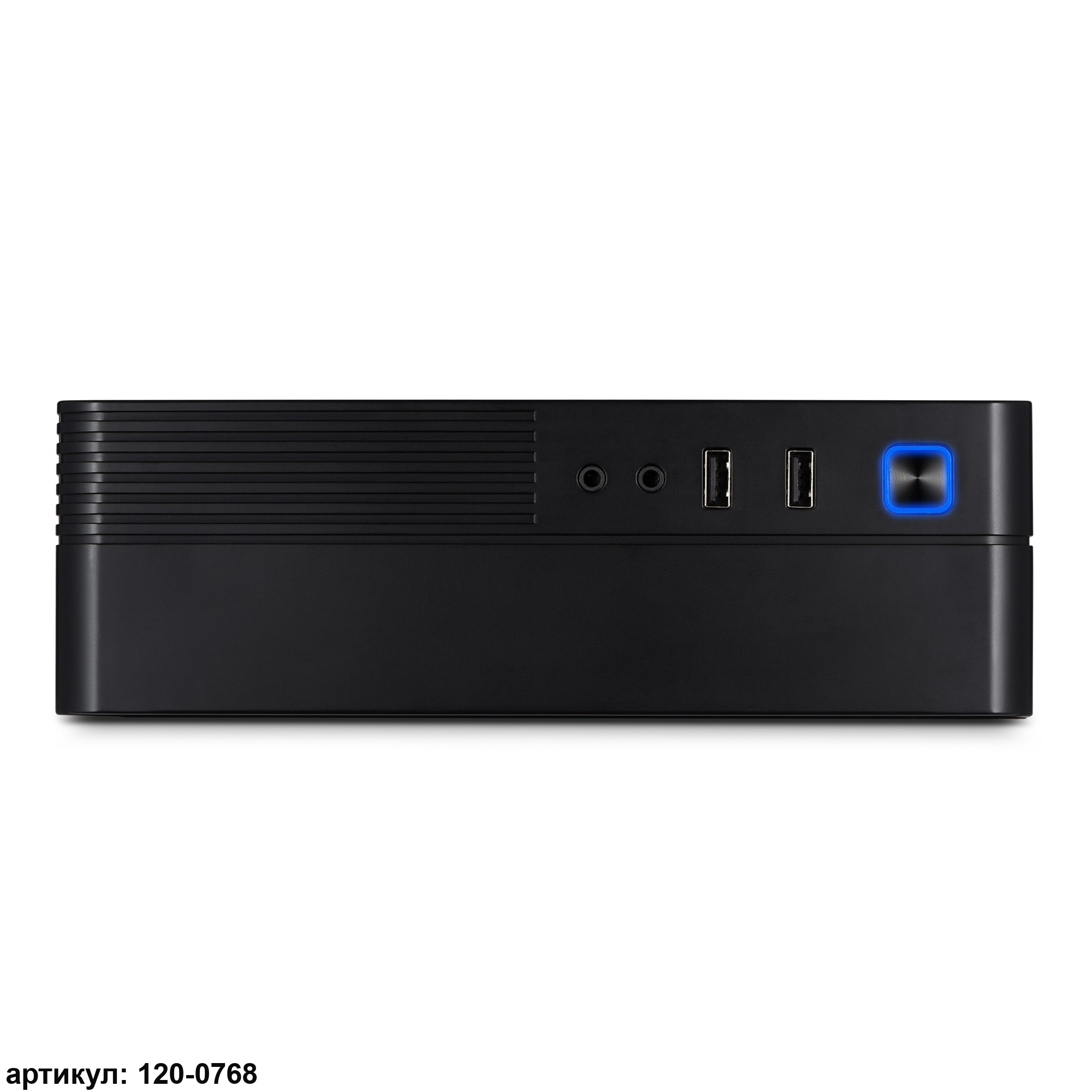 - Устройство выполнено в прочном металлическом корпусе с обильной перфорацией для оптимального охлаждения. На пластиковой передней панели удобно расположены USB-порты и аудио-разъёмы.