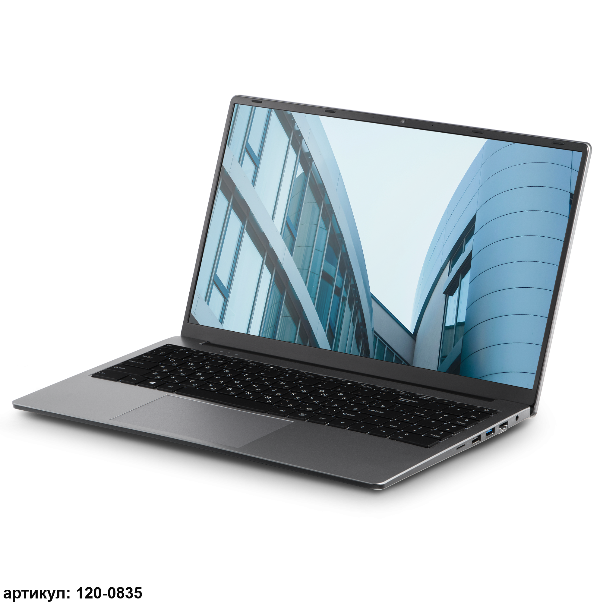 Дисплей диагональю 15,6 дюйма создан в применением технологии IPS и отличается высокими яркостью и насыщенностью цветов. Разрешение Full HD (1920x1080) обеспечивает высокую детальность изображения, а матовое покрытие экрана делает работу с ноутбуком комфортной в любых условиях освещённости.