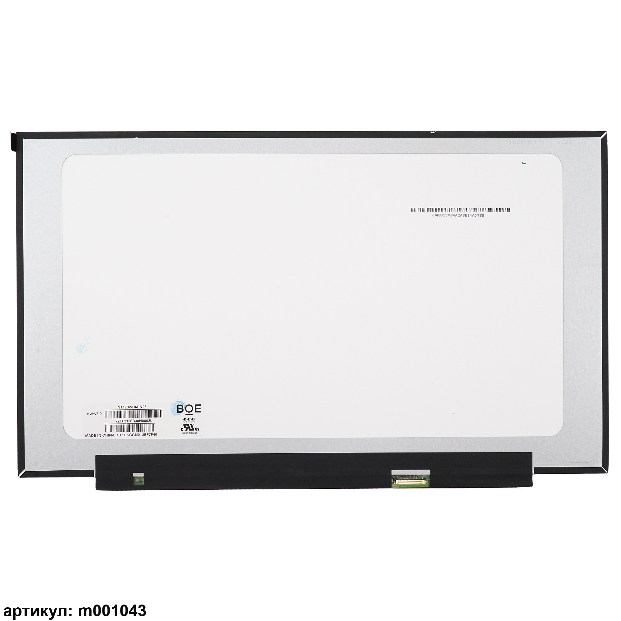 Матрица тонкая (slim), без креплений.Разъем подключения расположен справа внизу на внешней плате.Совместимые модели: NT173WDM-N25 V8.0, NT173WDM-N15, NT173WDM-N24, B173RTN03.1, B173RTN03.0, NT173WDM-N23