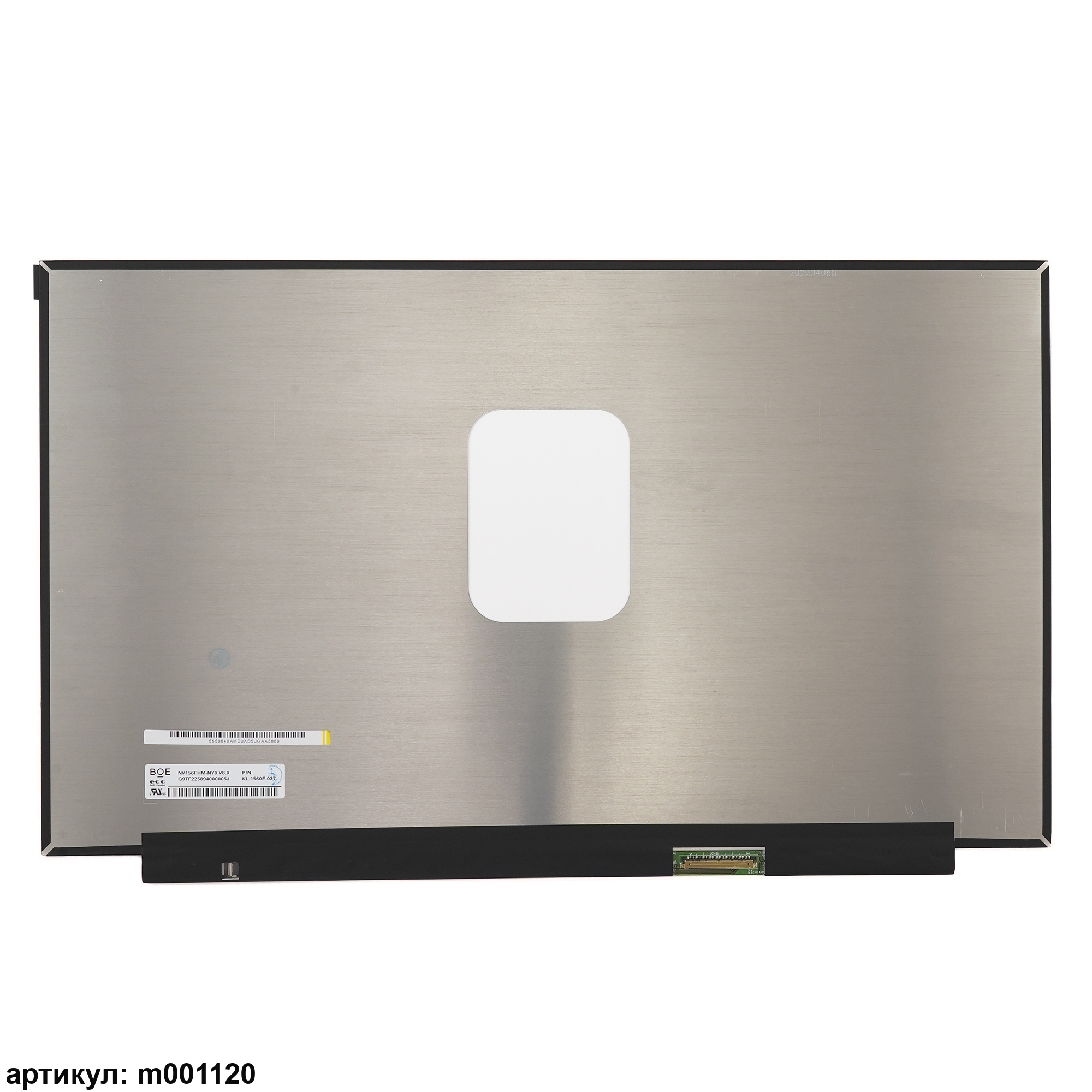 Матрица тонкая (Slim), без креплений.Разъем подключения расположен справа внизу на внешней плате.Совместимые модели: NV156FHM-NY0, NV156FHM-NY0 V8.0Размер: 350мм