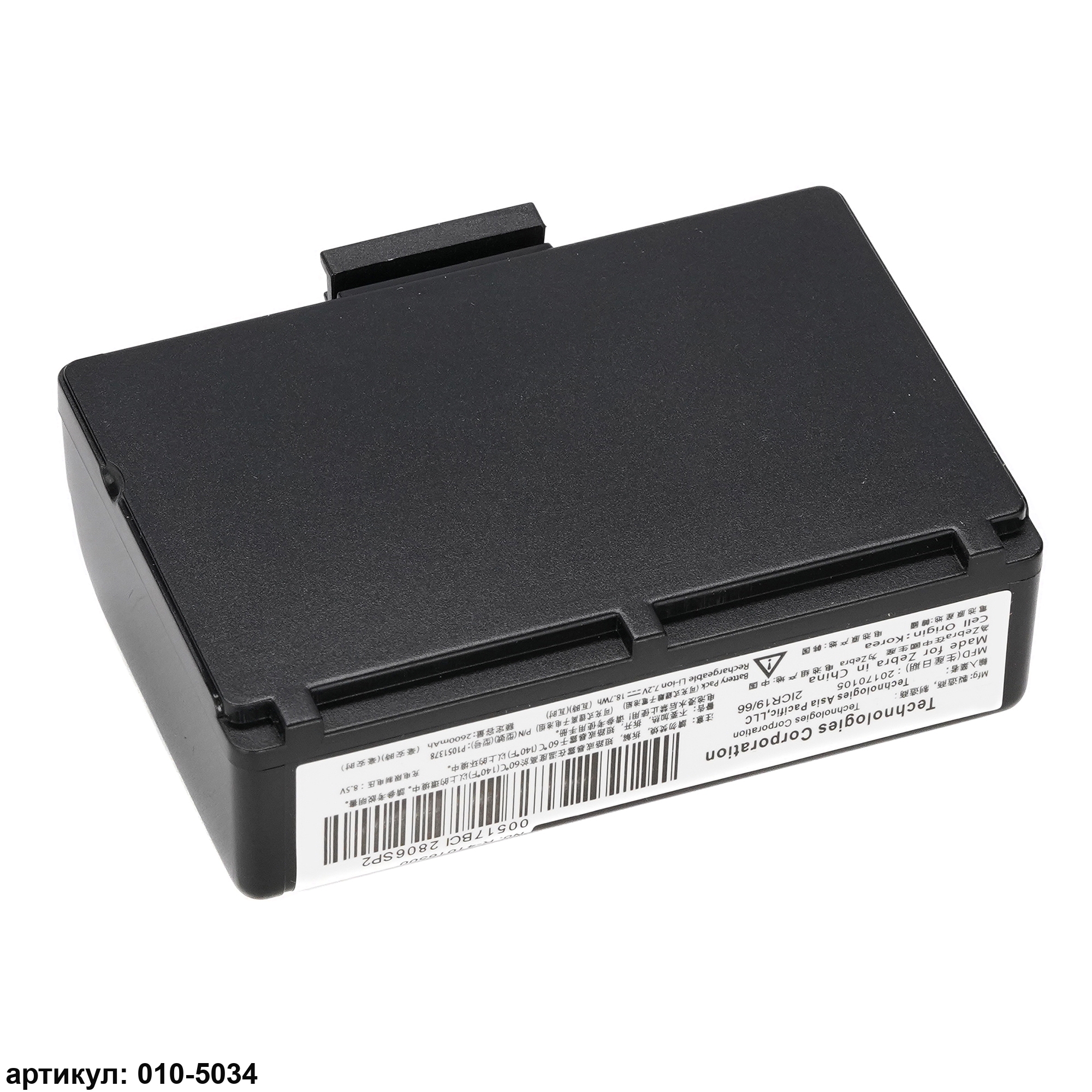Подходит к мобильным принтерам: Zebra QLN220, QLN320, ZQ500, ZQ510, ZQ520Совместимые p/n: P1031365-025, P1023901, P1023901-LF, AT16004, P1051378, P1031365-069, BTRY-MPP-34MA1-01, BTRY-MPP-34MAHC1-01, P1031365-059