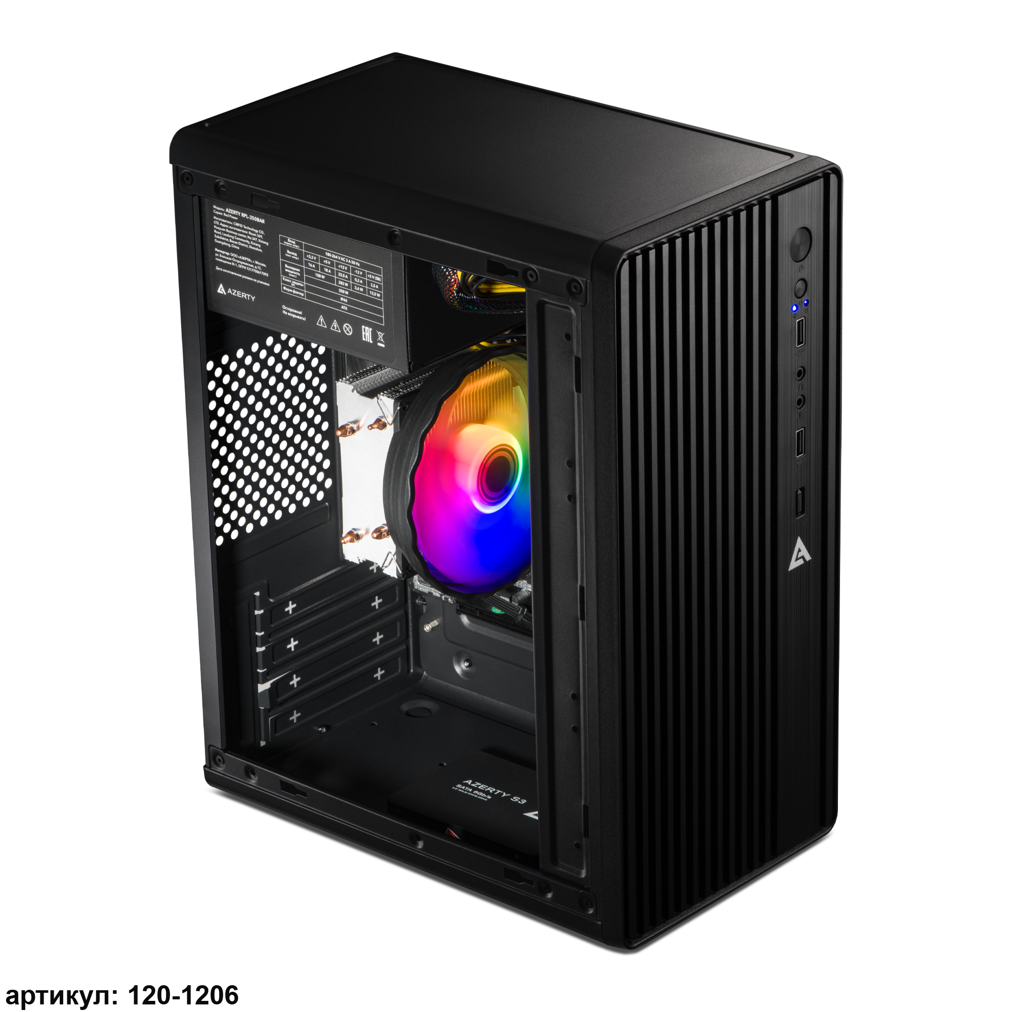 Персональный компьютер Azerty AZ-0002 сочетает компактность с достаточной мощностью для офисной работы — от документов до интернет-серфинга. Габариты 280×165×350 мм и классический дизайн позволяют легко вписать его в любое рабочее пространство.