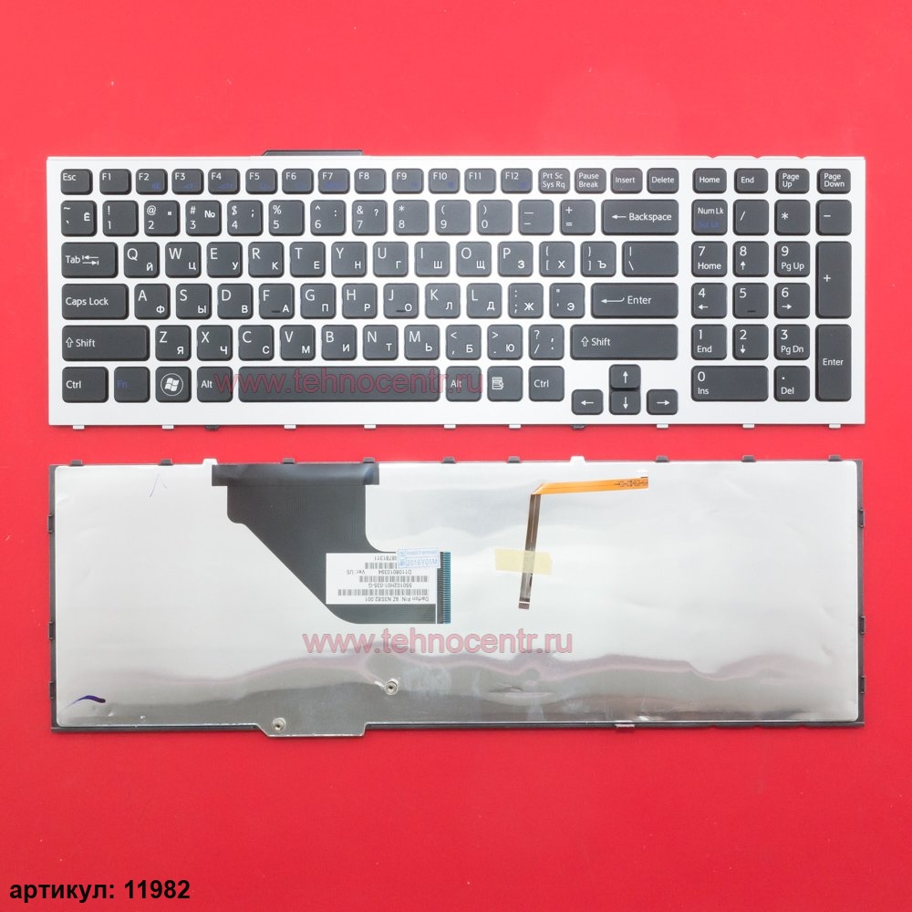 Клавиатура для ноутбука Sony VPC-F11 черная с серебристой рамкой, с подсветкой