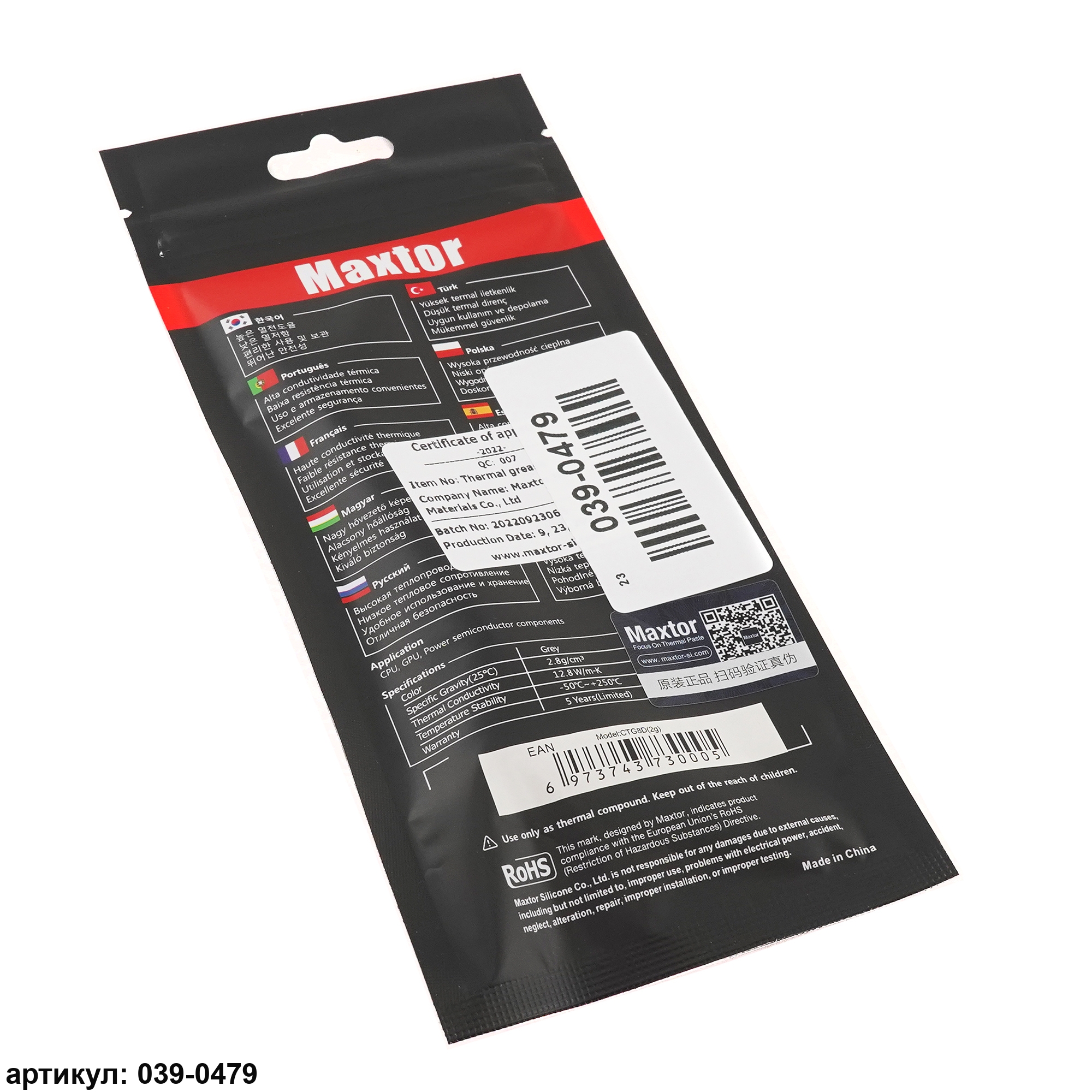 Термопаста Maxtor Thermal Grease CTG8 (2 г), теплопроводностью 12.8 Вт/м*К