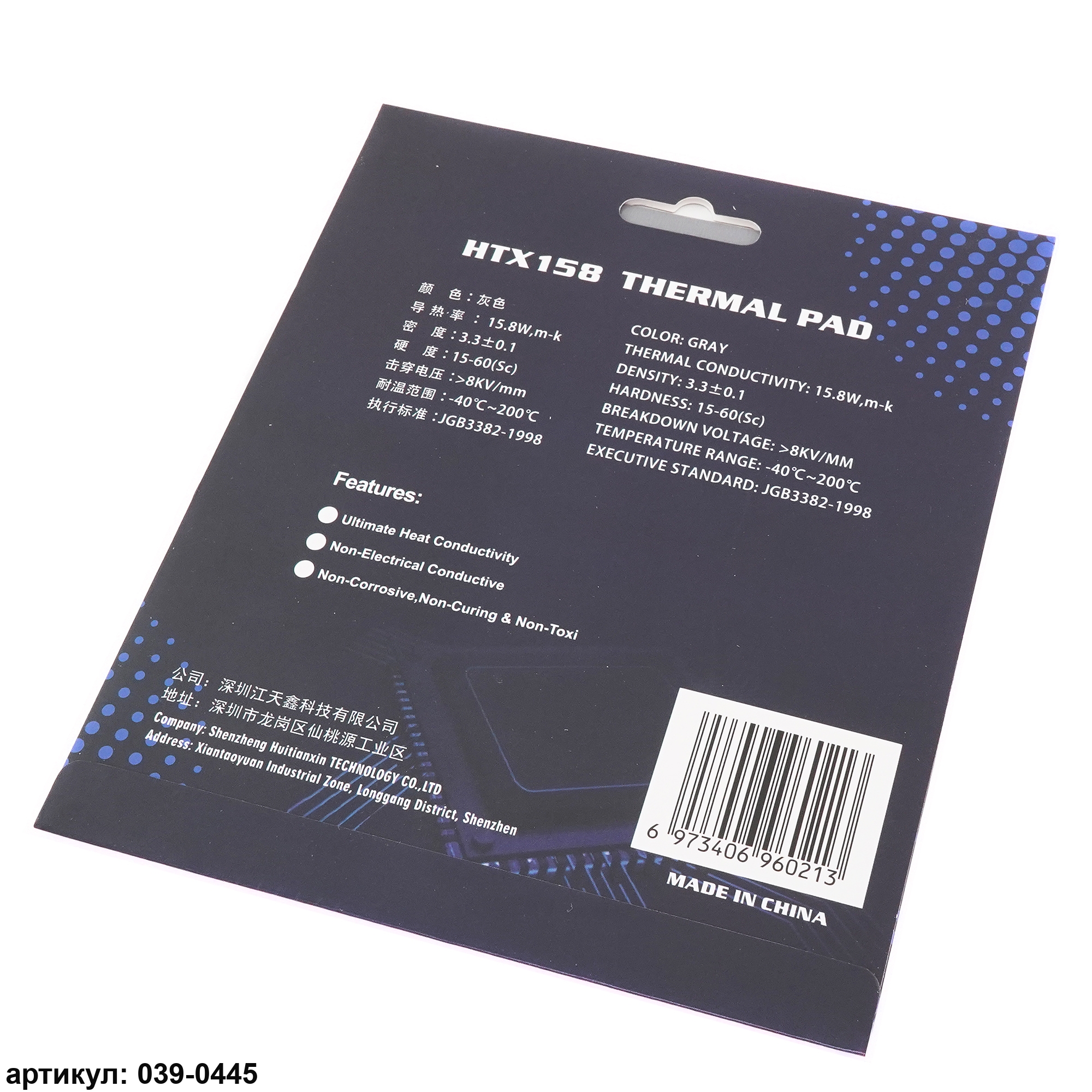 Термопрокладка 120x120х0.5 мм Hutixi HTX158 Thermal Pad 15.8 Вт/(м*К)