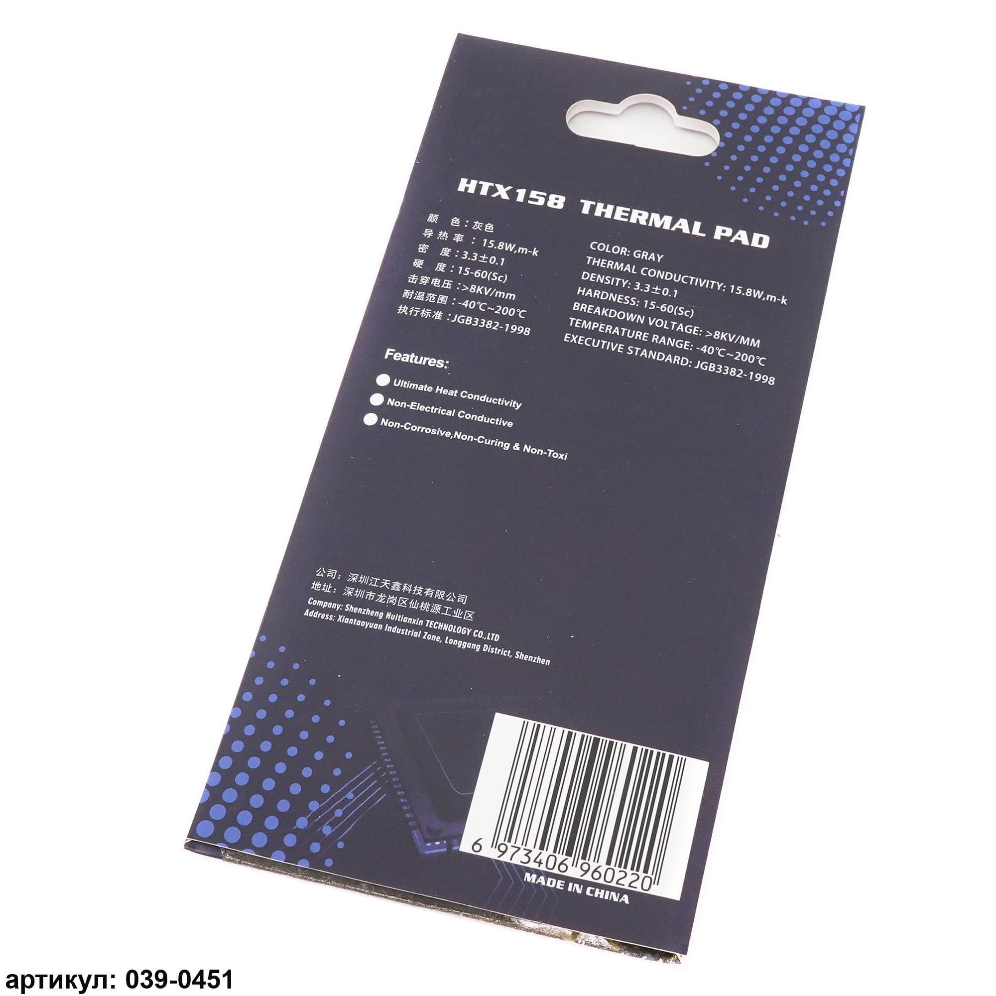 Термопрокладка 85x45х2 мм Hutixi HTX158 Thermal Pad 15.8 Вт/(м*К)